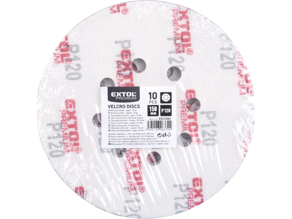 EXTOL PREMIUM papíry brusné výsek, suchý zip, bal. 10ks, 150mm, P120, 8803585