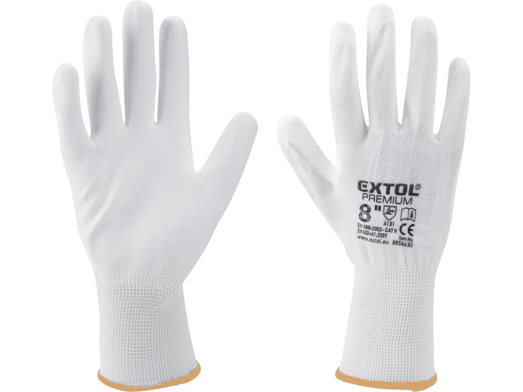 EXTOL PREMIUM rukavice z polyesteru polomáčené v PU, bílé, velikost 8", 8856630