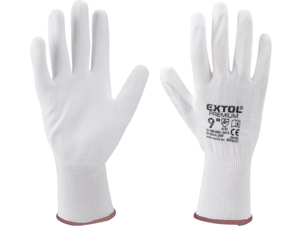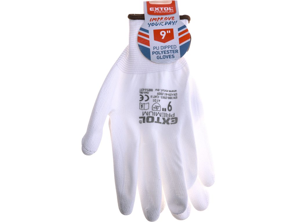 EXTOL PREMIUM rukavice z polyesteru polomáčené v PU, bílé, velikost 9", 8856631