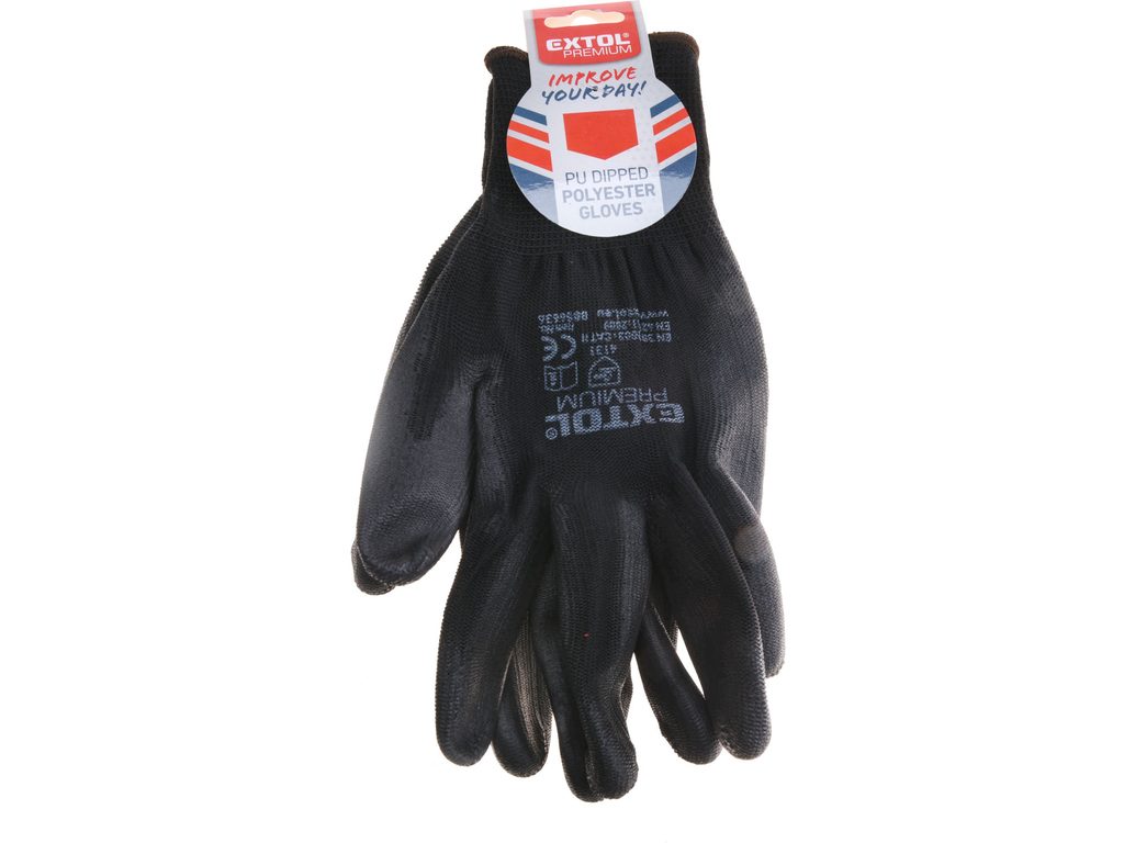 EXTOL PREMIUM rukavice z polyesteru polomáčené v PU, černé, velikost 8", 8856635