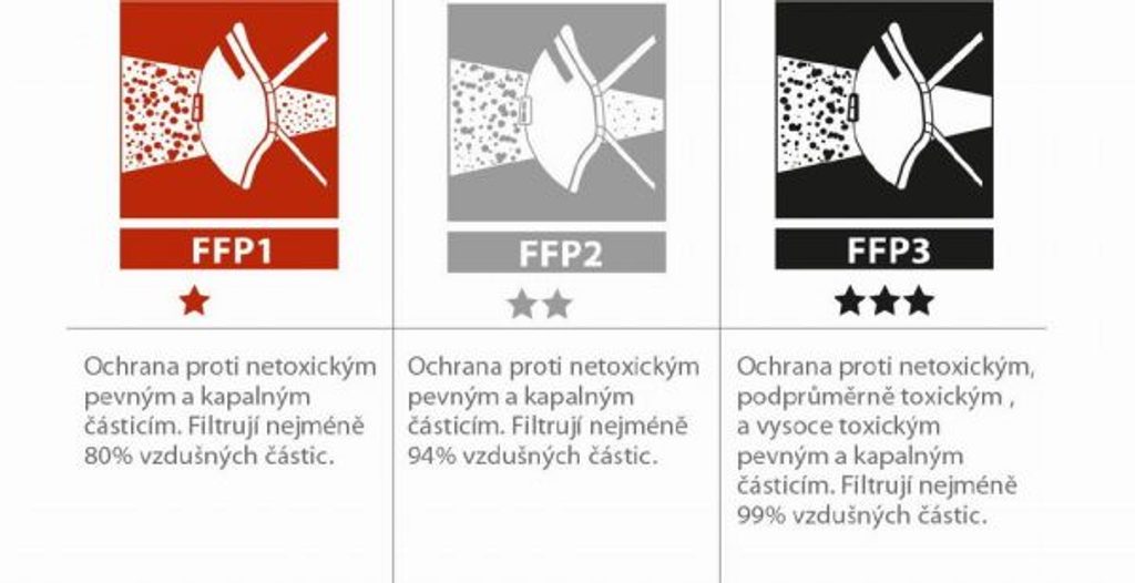 Ochrana proti netoxickým tuhým a kapalným částicím (např. olejové mlhy). Filtrace alespoň 94procent vzdušných částic