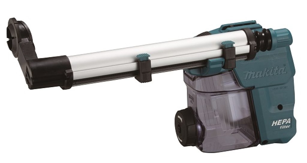 Kompletní odsávací adaptér pro kladivo HR3012F. možnost oklepání filtru pomocí kolečka výrazně prodlužuje dobu použití. Maximální délka vrtáku 265 mm. Rozměry 424x145x235mm.