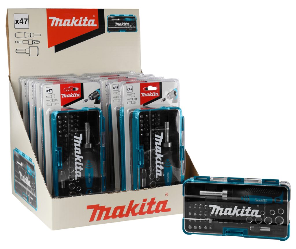 Makita B-36170-10 - sada bitů 1/4" a hlavic se šroubovákem 47 ks v plastové krabičce, 10 ks