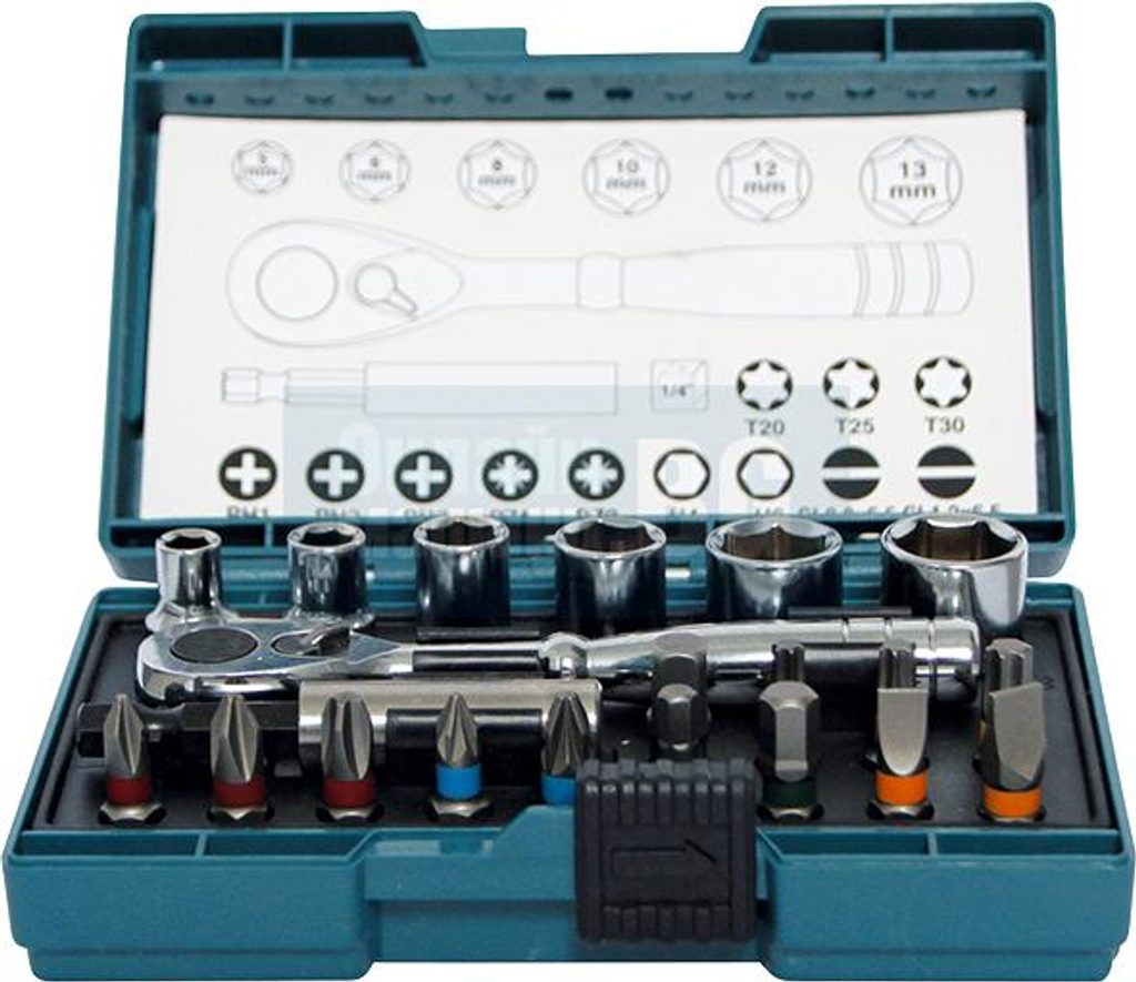 Makita B-54081 - sada bitů 1/4" a nástrčných klíčů 21 ks v plastové krabičce
