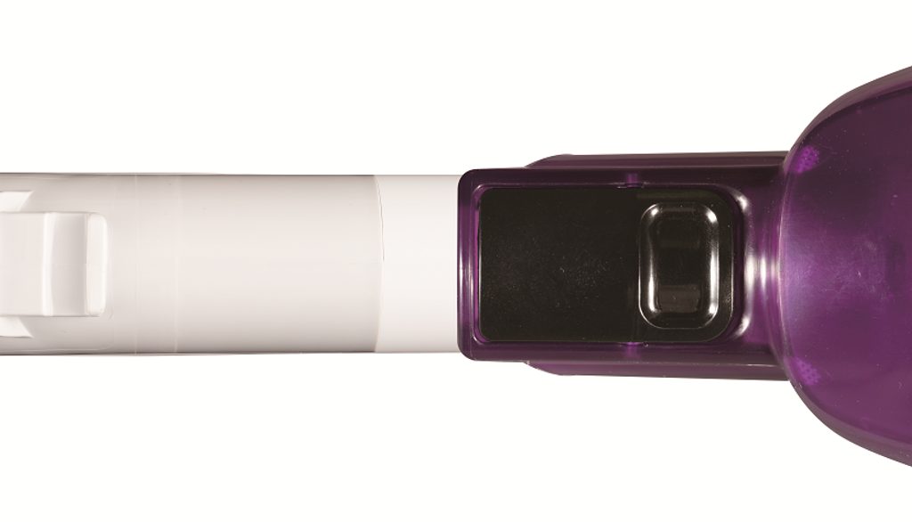 - Bílé provedení s fialovou nádobou na prach