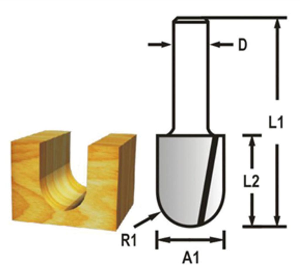Frézka se stopkou 8 mm, průměrem 9,5 mm, pracovní délkou 12,7 mm a celkovou délkou 44 mm.