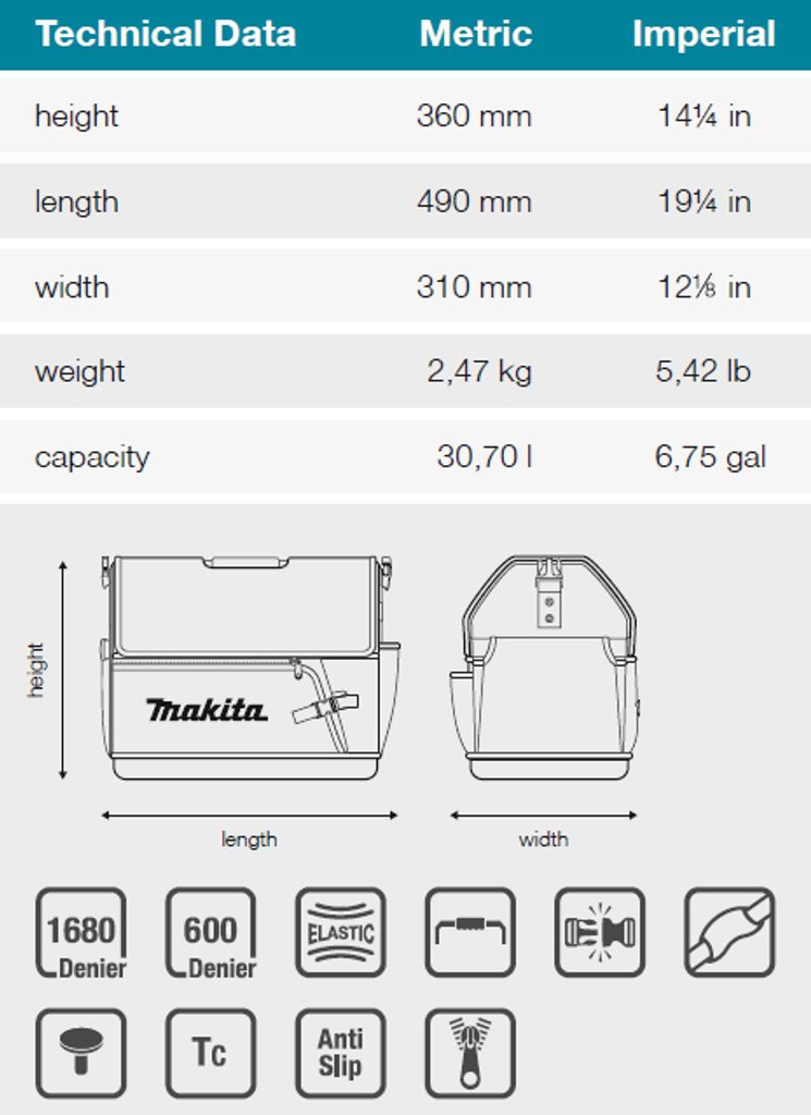 Buďte první, kdo ohodnotí "Makita E-15419 - brašna na nářadí 490x310x360mm=oldE-05446"