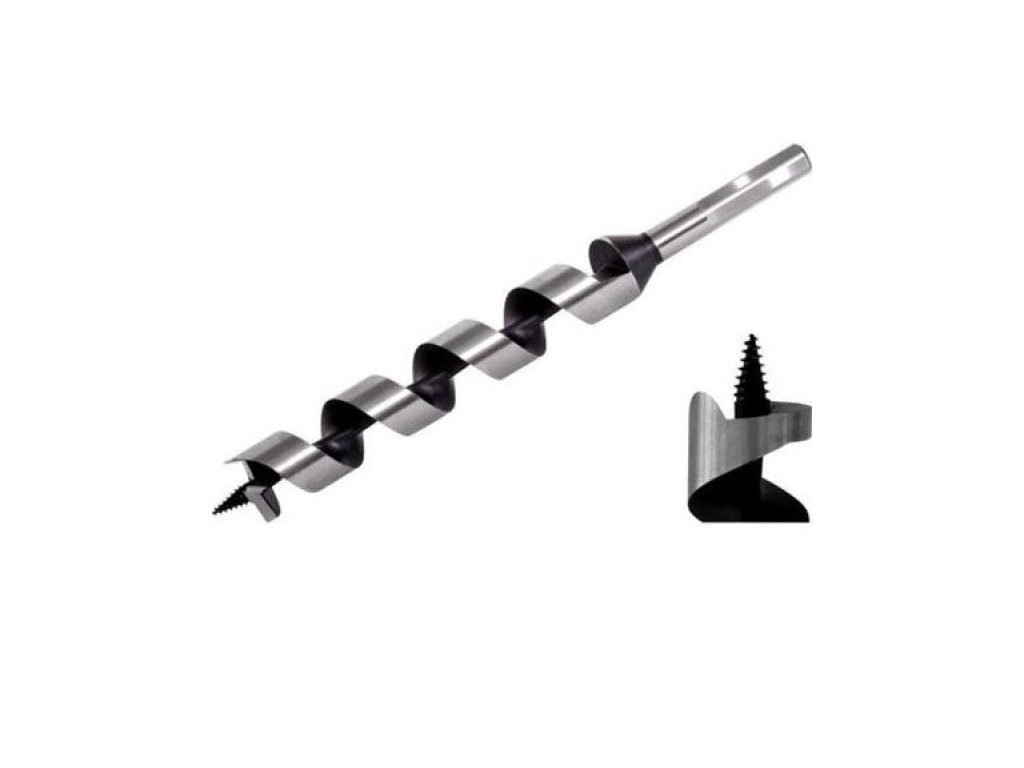 Hadovitý vrták se samostatně centrovací závitovou špičkou a předřezem s šestihrannou stopkou.